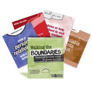 Walking the Boundaries is a resource that can assist workers to move towards grey areas. These cards engender a sense of enquiry and curiosity; they invite us to reflect on our purpose, values, beliefs, blind spots and stories … and in so doing, they are a very useful tool for building practice wisdom.