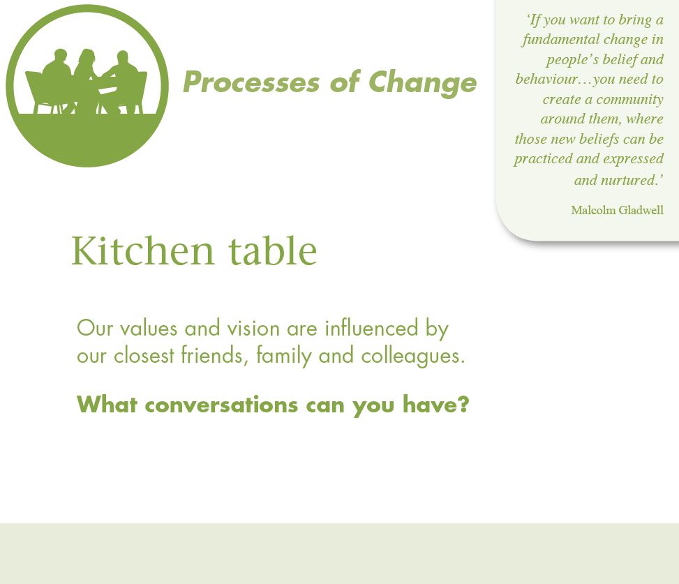 Readiness: The biggest moment on a journey of change is enabling and encouraging others to be really ready to change themselves. If we’re not really ready to change, there is no point moving forwards.